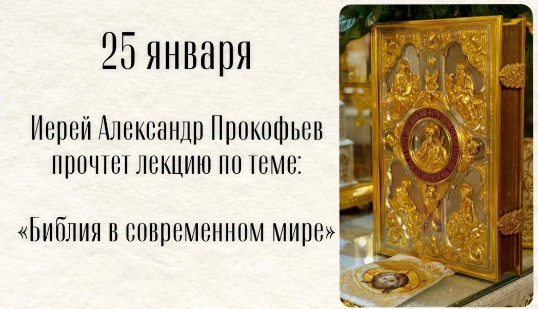 Иерей Александр Прокофьев прочтет лекцию по теме «Библия в современном мире» 22.01.2026 22.01.2026 В рамках лектория Воскресной школы для взрослых иерей Александр Прокофьев прочтет лекцию по теме: «Библия в современном мире» 25 января по окончании Литургии Нижний храм Приглашаем всех желающих! (8) Поделиться:Поделитесь в Twitter (Opens in new window)Отправить ссылку в ВКонтакте (Opens in new window)БольшеClick to share on Google+ (Opens in new window)Отправить ссылку в Одноклассники (Opens in new window) Аксиа! Поздравляем! Начинается набор в Подростковый клуб при Соборе Владимирской иконы Божией Матери Добавить комментарий Отменить ответ Ваш e-mail не будет опубликован. Обязательные поля помечены *КомментарийИмя* Email* Сайт Нажмите галочку (защита от спама) Для того, чтобы иметь возможность комментировать, включите JavaScript в Вашем браузере.