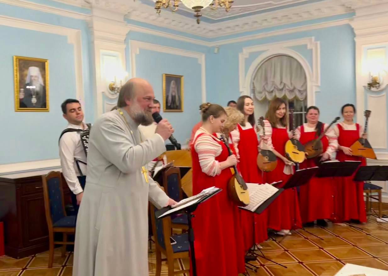 Далее встреча продолжилась неформальным общением за чаепитием и концертом народного ансамбля «Русская песня», которому солировал иерей Антоний Малаховский.