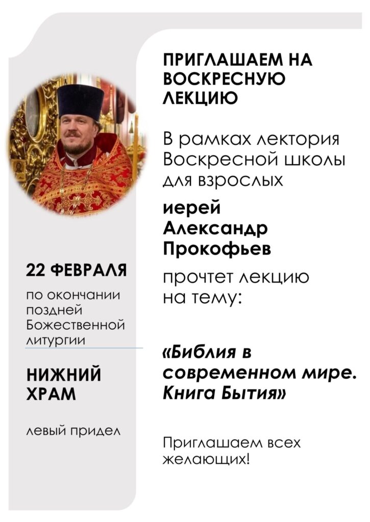 Приглашаем на воскресную лекцию 22 февраля по окончании поздней Литургии приглашаем на воскресную лекцию иерея Александра Прокофьева (9) Поделиться:Поделитесь в Twitter (Opens in new window)Отправить ссылку в ВКонтакте (Opens in new window)БольшеClick to share on Google+ (Opens in new window)Отправить ссылку в Одноклассники (Opens in new window) Настоятель Собора протоиерей Георгий Шмид Молодежный форум Центрального благочиния прошел 20 февраля в нашем соборе Добавить комментарий Отменить ответ Ваш e-mail не будет опубликован. Обязательные поля помечены *КомментарийИмя* Email* Сайт Нажмите галочку (защита от спама) Для того, чтобы иметь возможность комментировать, включите JavaScript в Вашем браузере.