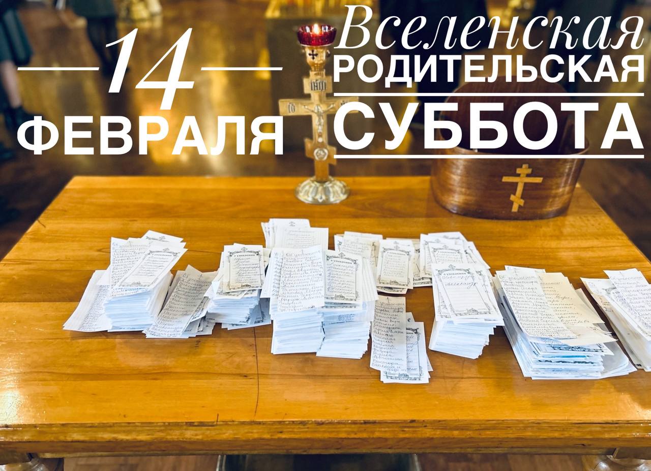 14 февраля – две Божественные литургии (в 7:00 и 10:00). В субботу в течение всего дня будут совершаться панихиды одновременно в нижнем и верхнем храмах. Дежурят два священника.